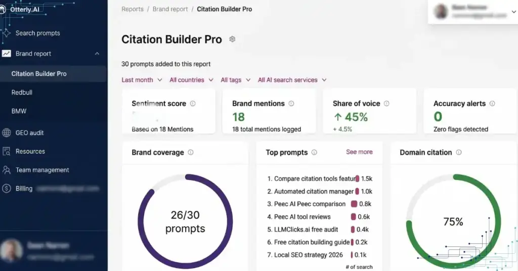Ans: No. Otterly tracks whether your brand name appears in AI responses. It does not evaluate whether the content of those responses is accurate.