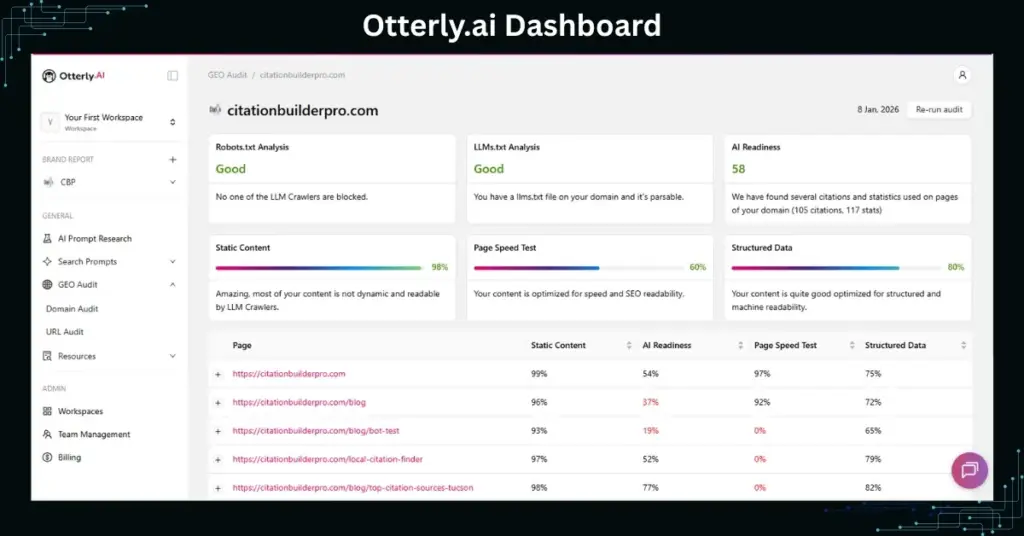 Multi-Platform Coverage: Otterly tracks ChatGPT, Perplexity, and Gemini from one dashboard.