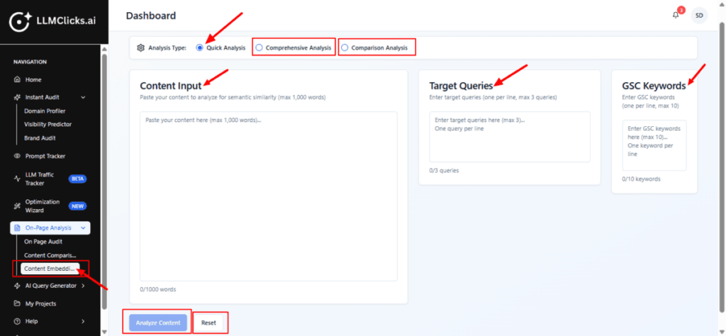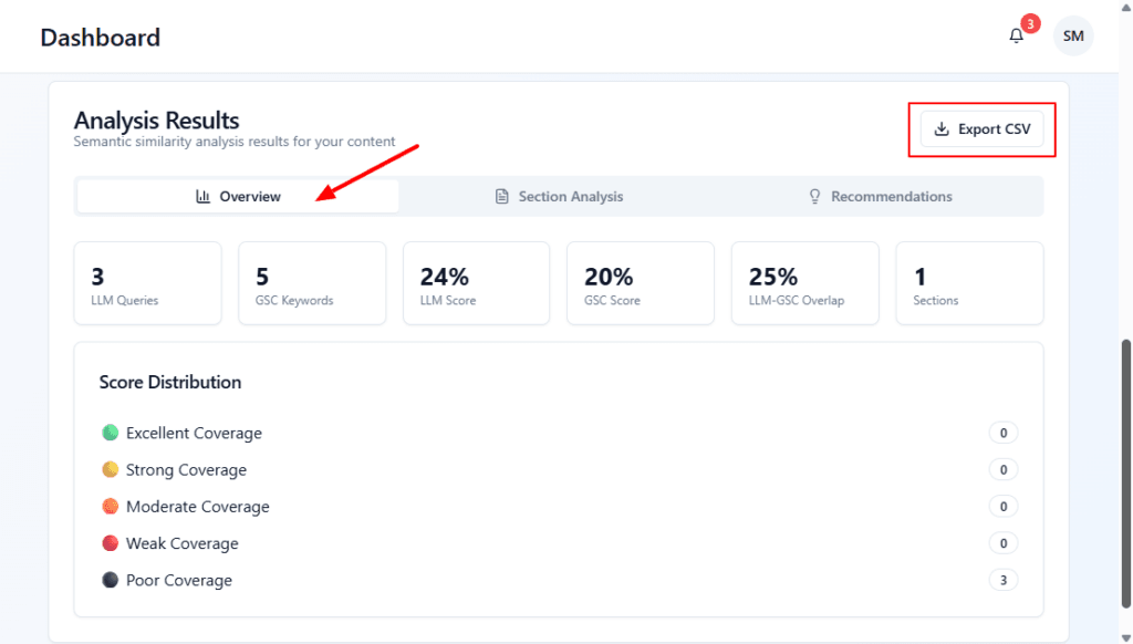 LLM Score – overall similarity score between your content and LLM queries.