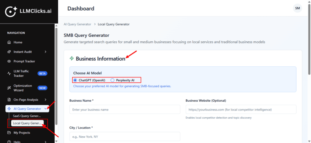 The Local Query Generator creates geo-targeted search queries for local businesses based on services, city, and customer intent. It mimics how real users search in AI assistants and Google for nearby solutions—helping you improve local SEO, AI visibility, and lead generation.